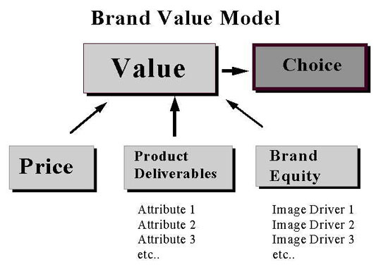 In addition, we believe that a brand's value is directly related to customer choice, or switching behavior. That is, if a particular brand maintains a significantly higher perception of value to a consumer than any other brand in the category, that consumer will consistently purchase that brand. The source of that value is the combination of tangible features, intangible features and price. Conversely, as brands in a category become less differentiated in terms of both tangible and intangible features, price becomes the major differentiator of value. Thus, this model is closely aligned with the recent work by Frederick Reichheld (The Loyalty Effect).